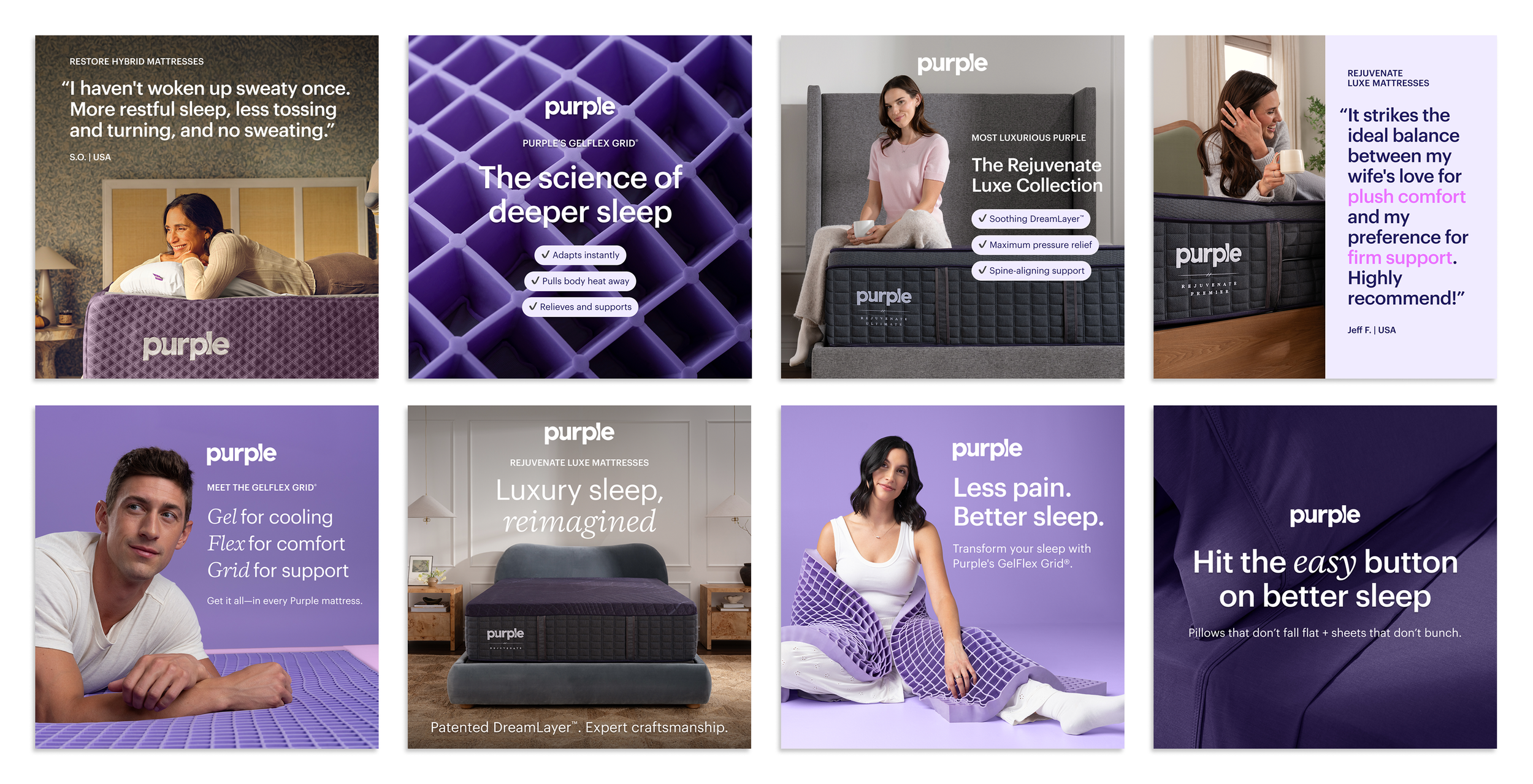 Purple is an innovative mattress and bedding company that is reinventing the way we sleep. Working on the Creative Team, I became the lead email designer—I created email templates and a welcome automation series. I also worked on marketing assets for promotions and campaigns that involved paid media, motion graphics, print production for retail environments, and organic social content.